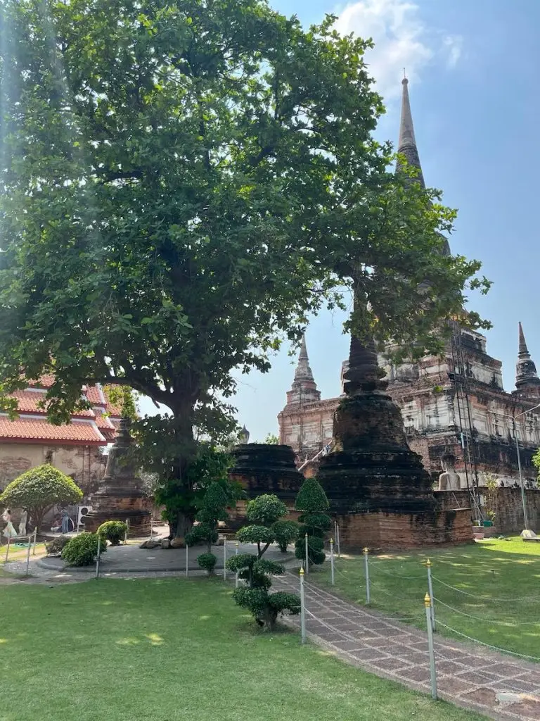 Wat mij opviel is dat de tempels er echt zijn om het land en de mensen te steunen. Wat niet wil zeggen dat alles perfect is. Aangekomen bij Wat Yai Chai Mongkhon ga ik eerst langs alle krachtvelden om op te ruimen. Om aan het eind weer bij een boom te gaan zitten voor de eigenlijke healing.